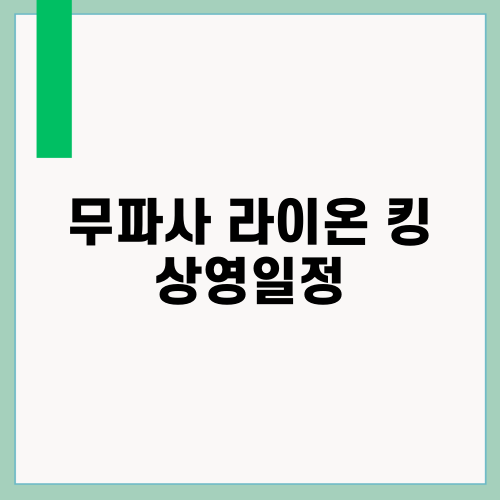 드디어 기다리던 영화 <무파사: 라이온 킹>의 상영일정이 공개되었습니다! 2024년 12월 18일에도 많은 영화 팬들이 기대하고 있는데요. 이번 작품은 1994년에 개봉한 <라이온 킹>의 30주년 기념작으로, 전설적인 캐릭터 무파사의 숨겨진 이야기를 다루고 있습니다.